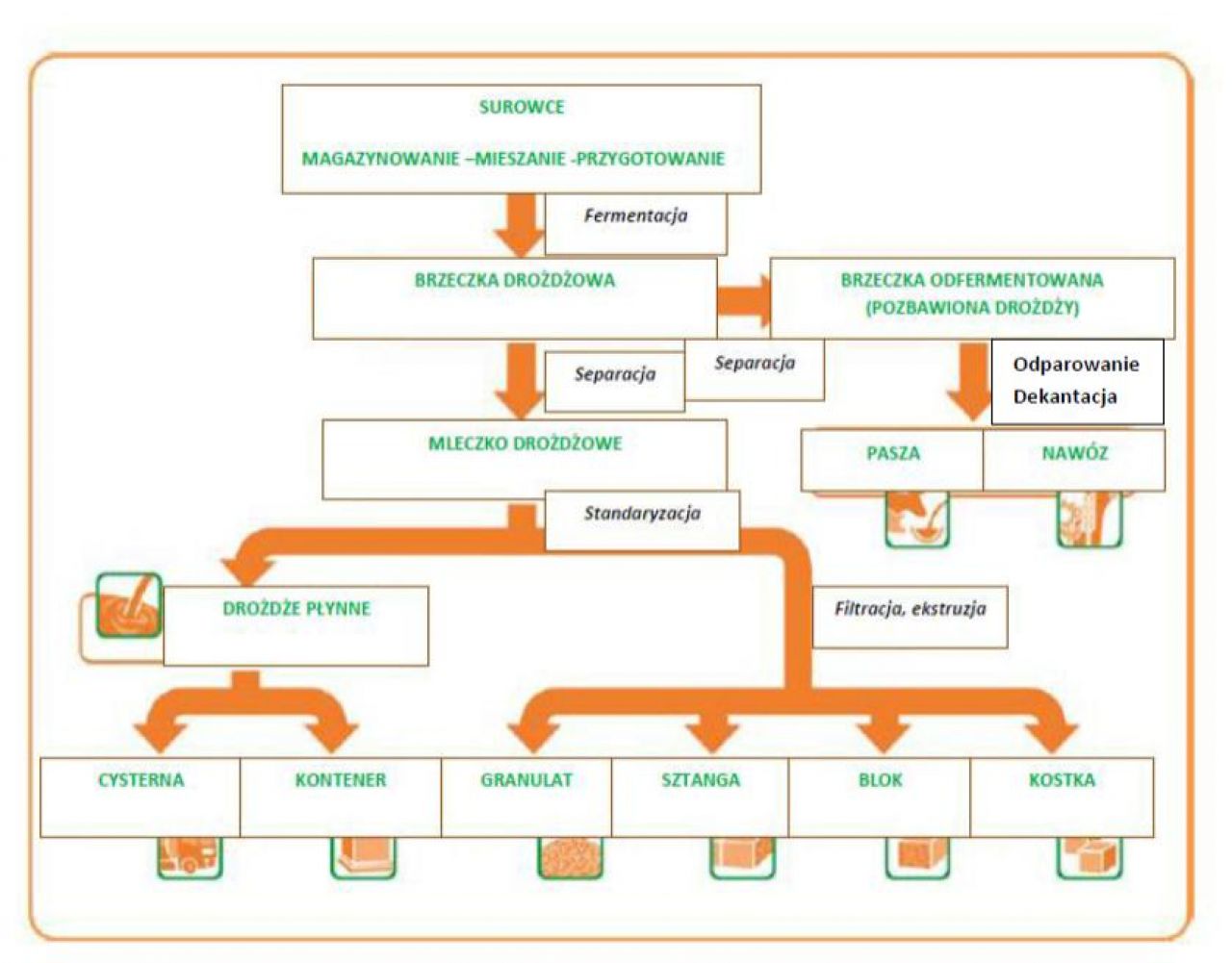 Pekařské droždí UNIFERM je vyráběno v různých formách. Nejmenší jednotkou je kostka 42 g ( na maloobchodním trhu v České republice a na Slovensku je toto balení dostupné a velmi známé ). Pro výrobu droždí ve všech jeho formách – kostky („liberky“), bloky nebo granulát, používáme drožďové mléko, které se z fermentoru dehydratuje pomocí vakuového filtru. Poté již tzv. extruder dává droždí různě požadovanou formu.