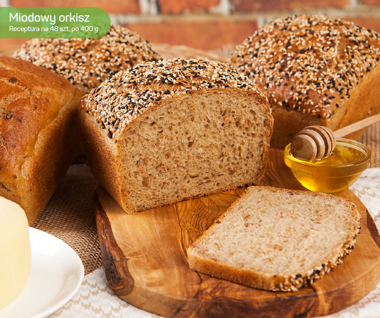 Opracowana została receptura na bazie UNIFERM FermFresh® Dinkel oraz UNIFERM FermFresh® Dinkelsauer, w której zawarty jest drogocenny orkisz i wartościowy miód. Zastosowanie dedykowanej formy do pieczywa pozwala uzyskać powtarzalny, sześcienny kształt, a nietypowa posypka, której sekretem jest czarny sezam, gwarantuje oryginalny wygląd przyciągający Konsumenta.